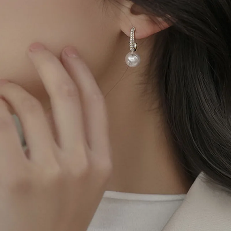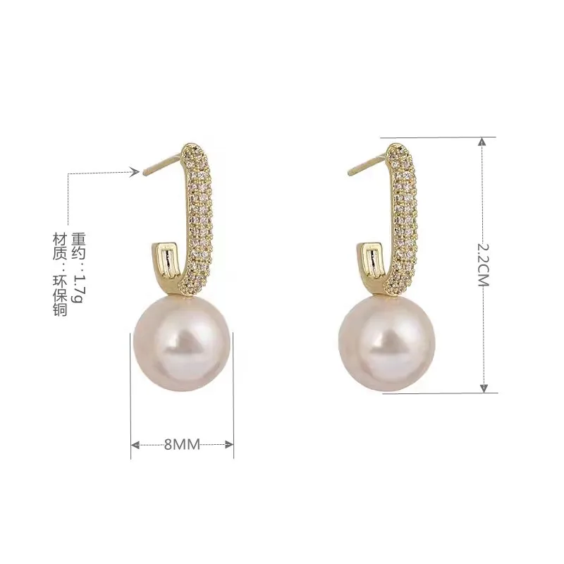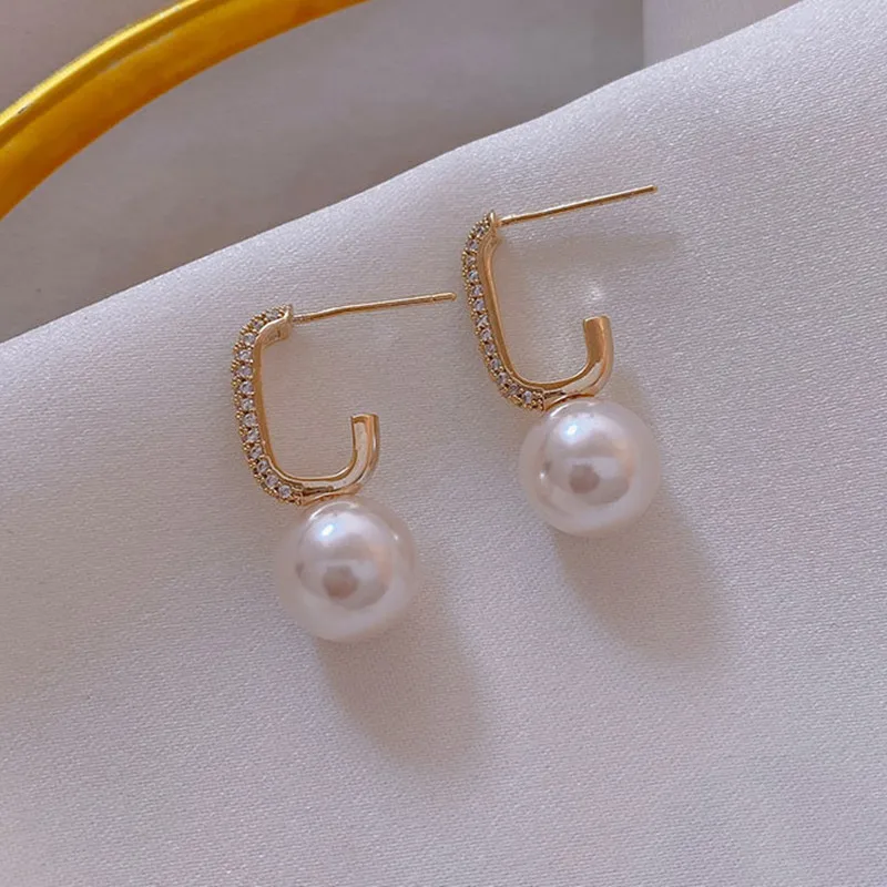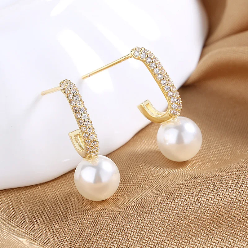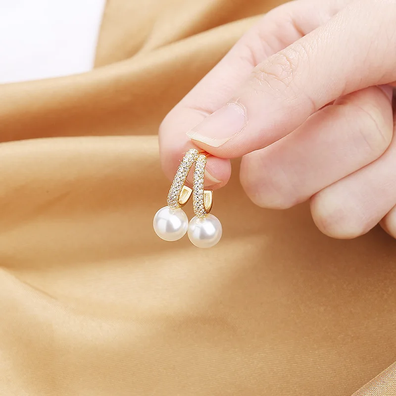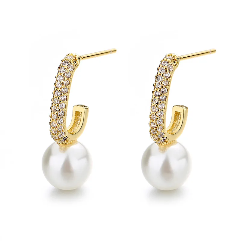 تصميم جديد C-شكل اللؤلؤ وأقراط للنساء الكورية موضة الذهب اللون مطعمة الزركون المعادن أقراط مجوهرات الحفلات هدية