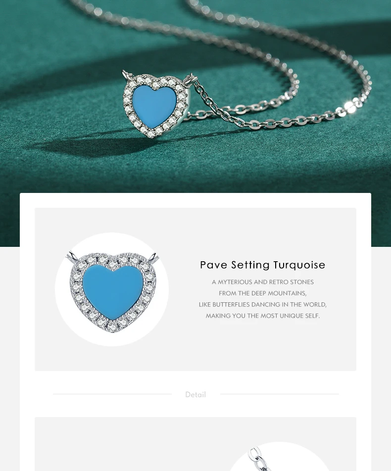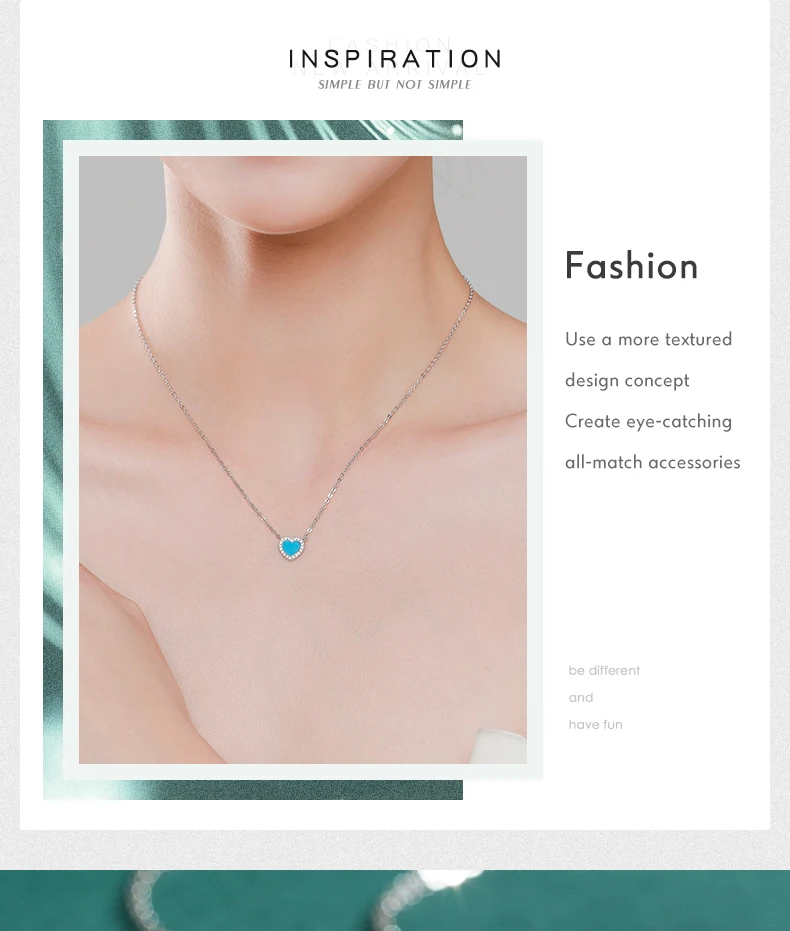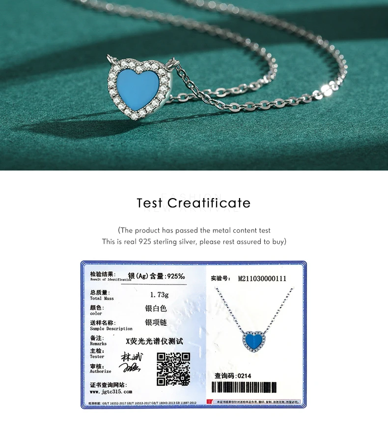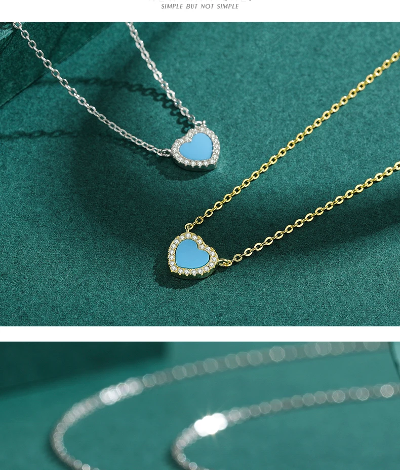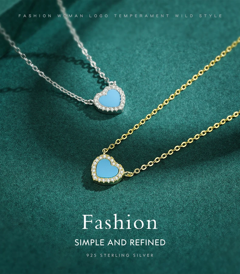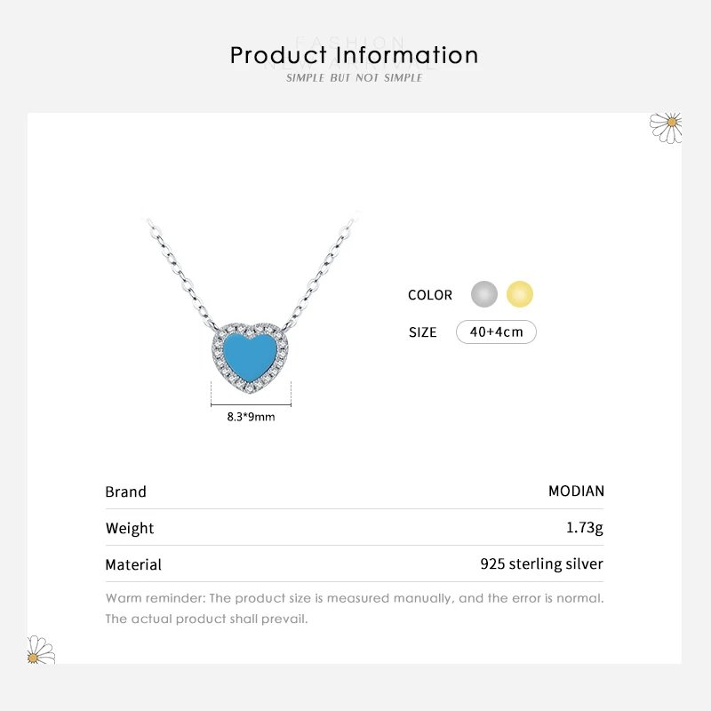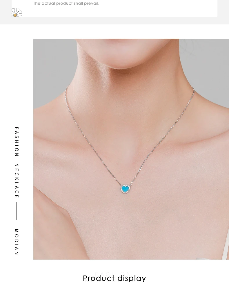 MODIAN رائعة 925 فضة قلوب الحب الفيروز قلادة سلسلة فضية قلادة للنساء مجوهرات هدايا عيد الحب